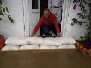 FloodSax in action as flood barriers